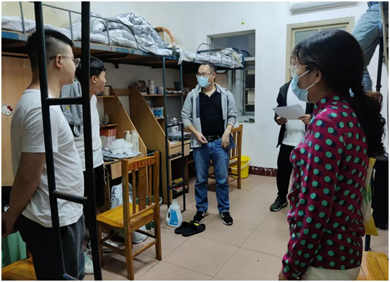 9月1日晚,学院党总支副书记汪宏志带领全体辅导员、班主任走访学生宿舍,看望2022级专升本新生和返校学生,送上真挚的关怀与问候。