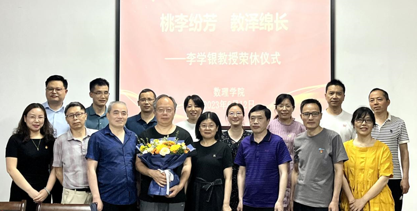 6月12日下午,球友会QY千亿入口李学银教授荣休仪式在实验楼302会议室举行。仪式由学院党总支书记周娅主持,学院班子成员、全体教师参加。