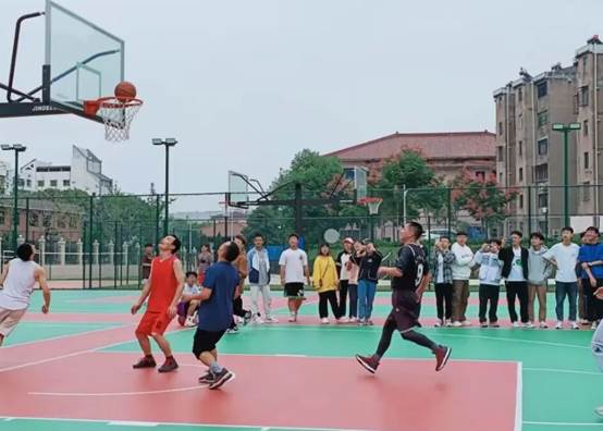 仪式结束后,迎新师生篮球友谊赛拉开序幕,现场气氛紧张而热烈。