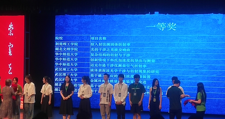 湖北省大学生物理实验创新设计竞赛是由湖北省教育厅主办的省级A类学科竞赛,由竞赛组委会、湖北省物理学会、湖北省高等学校实验物理教学研究会、湖北省高等学校物理实验教学示范中心联席会联合主办,共有全省44所高校选送的599件作品参加决赛,经过线上盲评、现场答辩与演示、合议复评等环节,共决出一等奖57项,二等奖106项,三等奖120项。