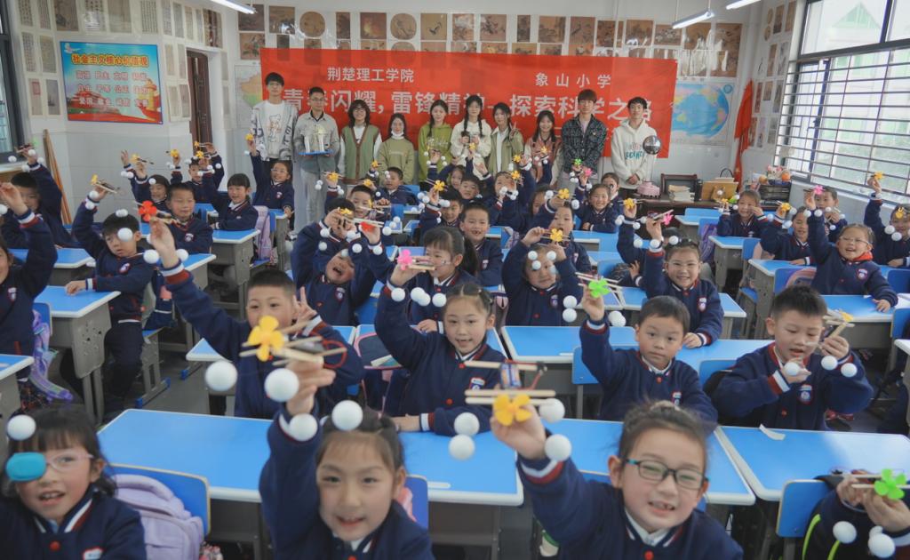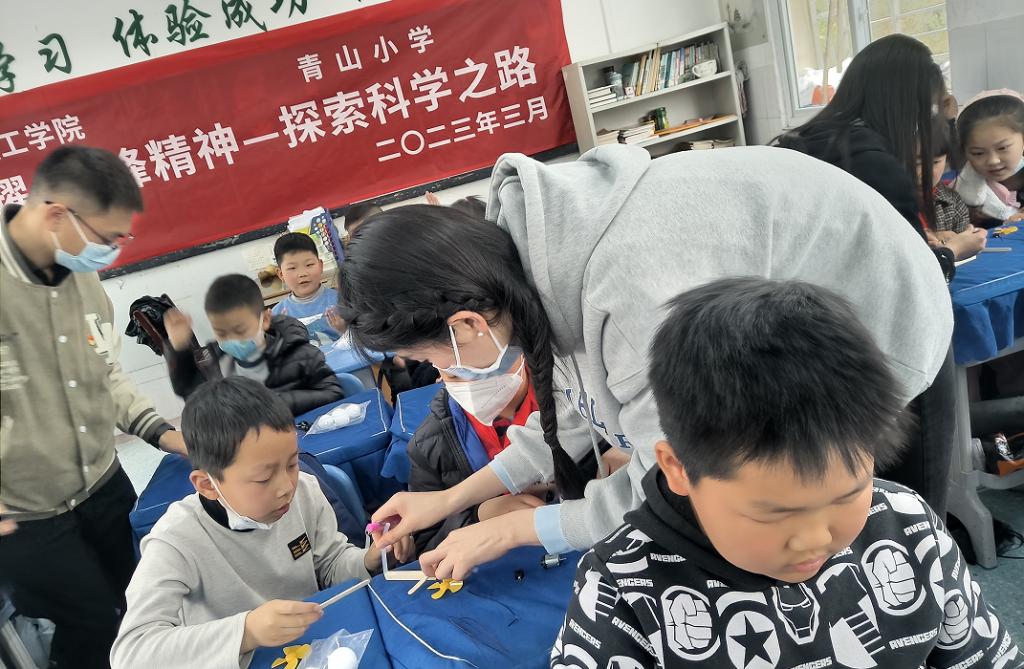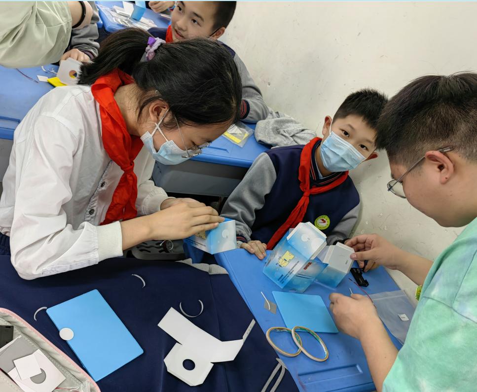 科普团走进小学课堂,指导孩子们做物理小实验,与孩子们一起探索科学世界奥秘。在科技小制作环节,指导老师向同学们介绍了“鲲龙”AG600M灭火飞机这一大国重器,讲述中国制造的飞速发展和巨大成就。并带领低年级同学动手制作“水上飞机”,高年级同学则挑战更有难度的幻灯机制作。好看、好玩,并且能亲自动手制作作品,同学们纷纷惊呼:收获满满!