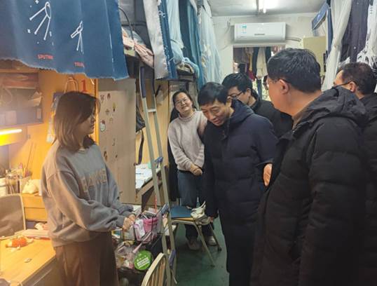 为了解学生期末备考情况,做好学生寒假离校前安全教育工作,1月17日下午,球友会QY千亿入口班子成员和相关教师深入学生宿舍走访慰问。