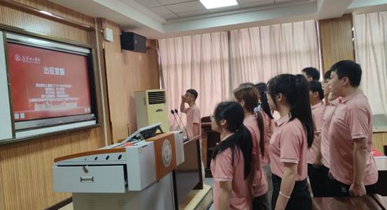 带队老师岳耀闯带领全体社会实践团队成员庄严宣誓,表达了青年学子为祖国为人民永久奋斗、在实践中磨砺青春的坚定信念。