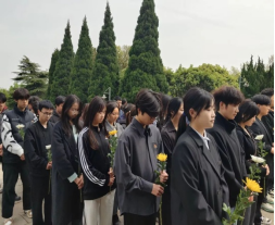 烈士陵园内,苍松翠柏环绕,烈士纪念碑肃然矗立。全体师生在革命烈士纪念碑前垂首肃立、默哀,奏唱国歌,重温入党誓词,敬献花篮,深切悼念为民族独立解放、国家繁荣富强作出牺牲和奉献的英雄先烈们。大家饱含着对祖国的热爱、对英烈的缅怀,